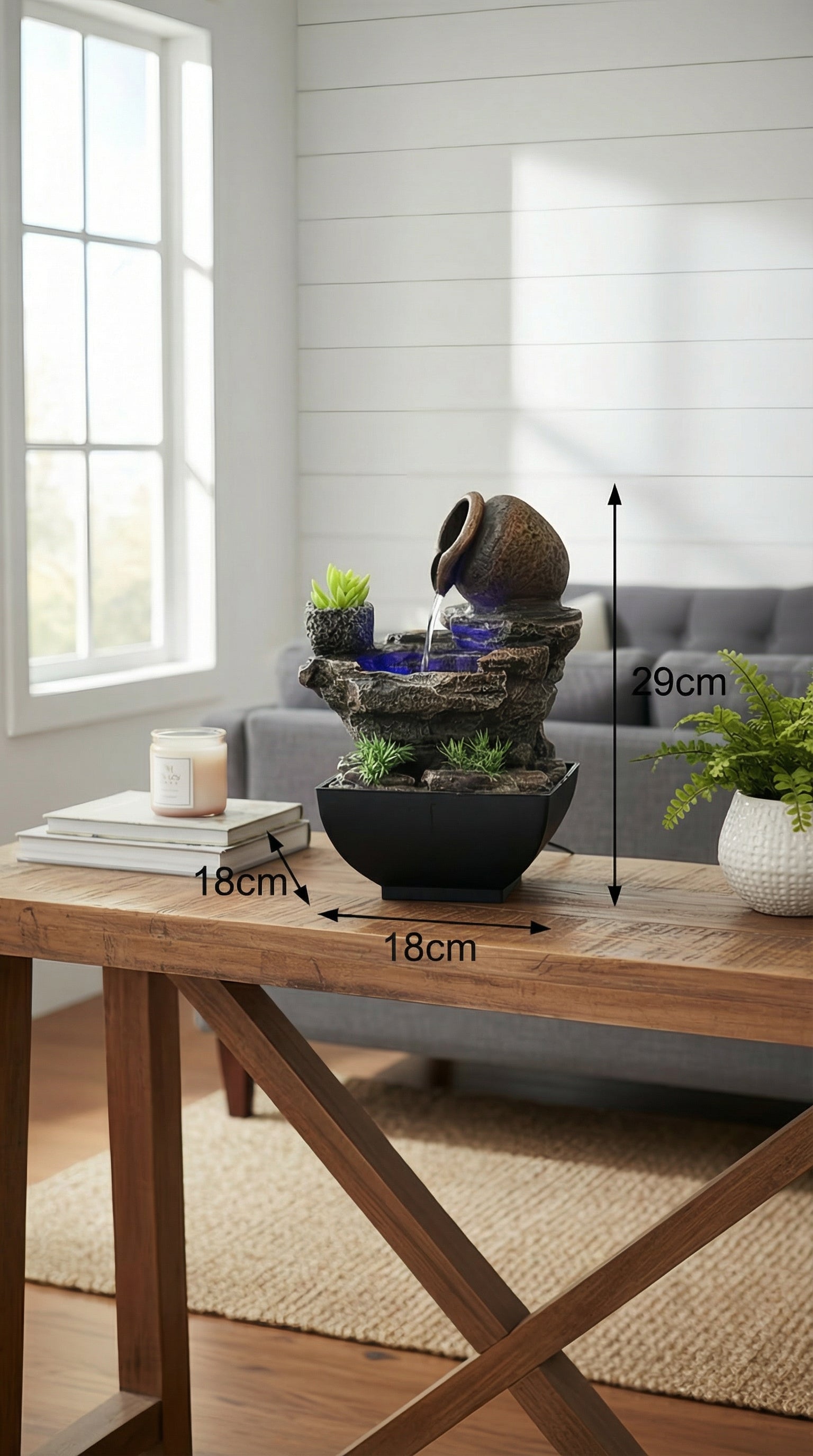 Elle crée instantanément une atmosphère de sérénité grâce au doux murmure de l'eau, transformant n'importe quelle pièce en un havre de paix. Son design raffiné enrichit votre décor avec une touche d'élégance naturelle, invitant au calme et au bien-être.